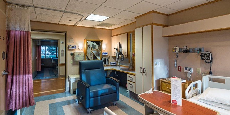 We have two dining areas and a dayroom where patients and families can socialize.